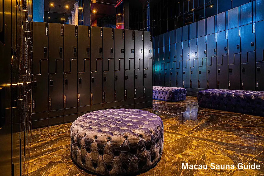 In Macau’s saunas, you can fit about the size of a carry-on in the locker room.
