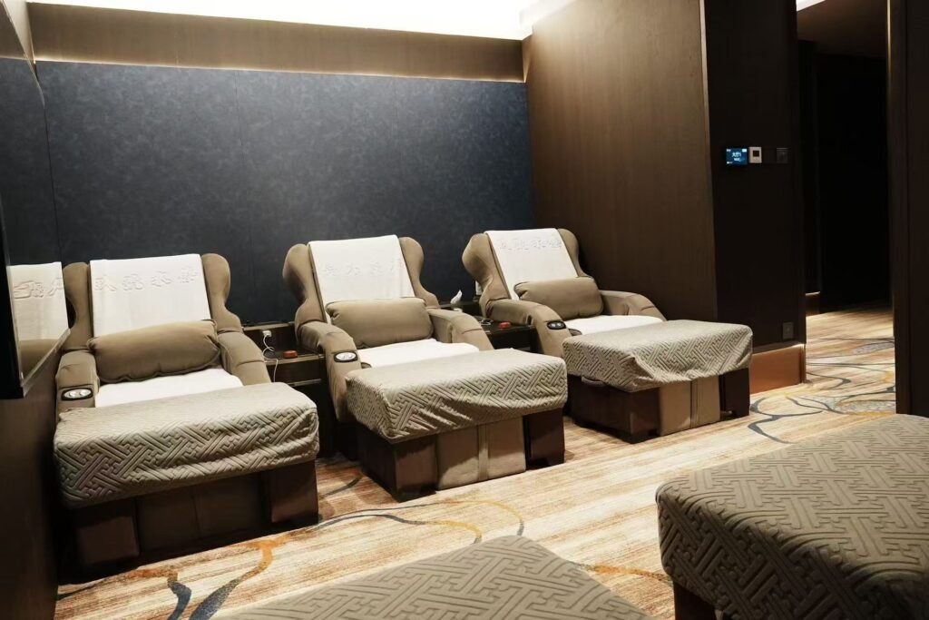 Beyond private massage rooms, the facility features a communal rest area complete with reclining chairs perfect for taking a nap. The entire layout is designed with long, refreshing stays in mind.